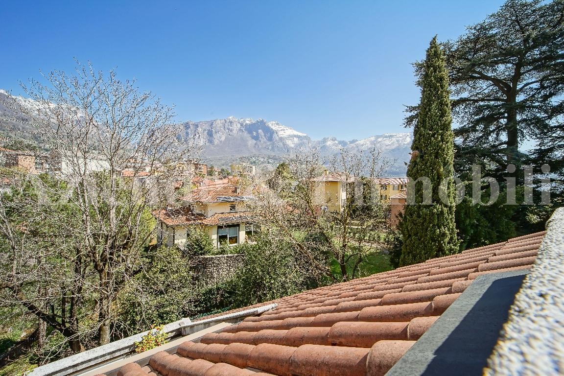 Lecco appartamento località Castello, nelle vicinanze del centro e comodo ad ogni servizio di prima necessità, la casa che proponiamo è un quadrilocale di 155 mq escluso aree esterne, il contesto è unico elegante e riservato, la vista è a dir poco spettacolare regalandoci scorci di naturale bellezza il tutto immerso nel parco condominiale con alberi secolari. La soluzione è composta da ingresso, accogliente soggiorno e sala da pranzo con affaccio sui due terrazzi a pozzo con esposizione a sud, la cucina è abitabile l'esposizione è a ovest, il disimpegno ci conduce nella zona notte dove troviamo il bagno con vasca, le due camere entrambi dotate di guardaroba e i relativi terrazzi a pozzo esposti a est, il locale lavanderia, e un'ulteriore camera con bagno e terrazzo con esposizione a nord. L'esclusività e l'unicità dell'abitazione signorile si trova al quarto e ultimo piano con ascensore ed è libero su quattro lati, a completare la soluzione l'ampio box, la cantina, e opzionale il doppio posto auto. Rif. VA 706